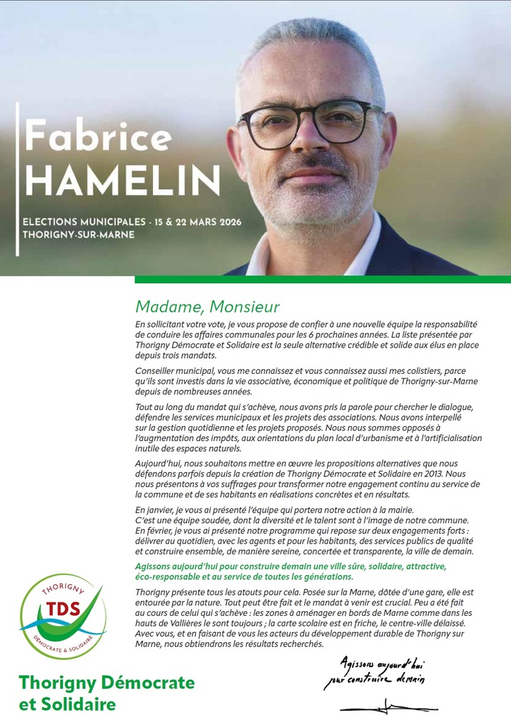 Une association de Thorigniens et Thorigniennes qui ont pour objectifs de faire vivre et avancer la démocratie locale à Thorigny sur Marne.